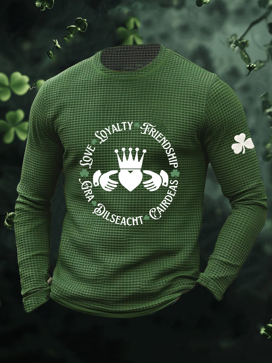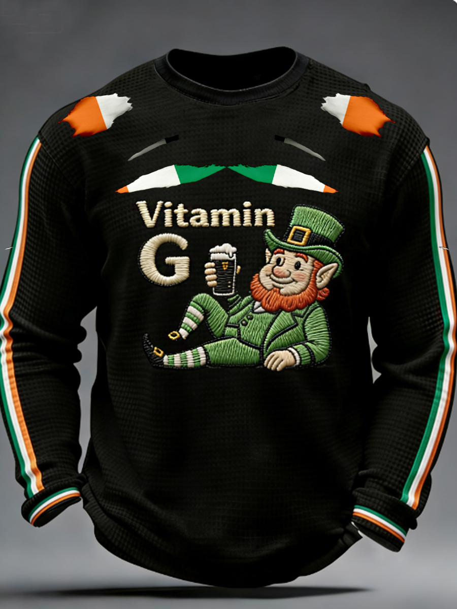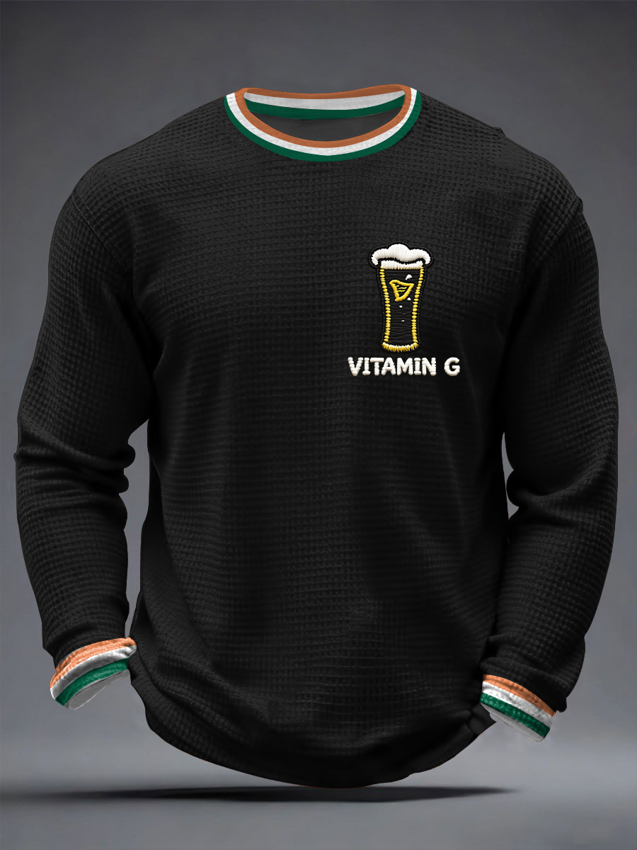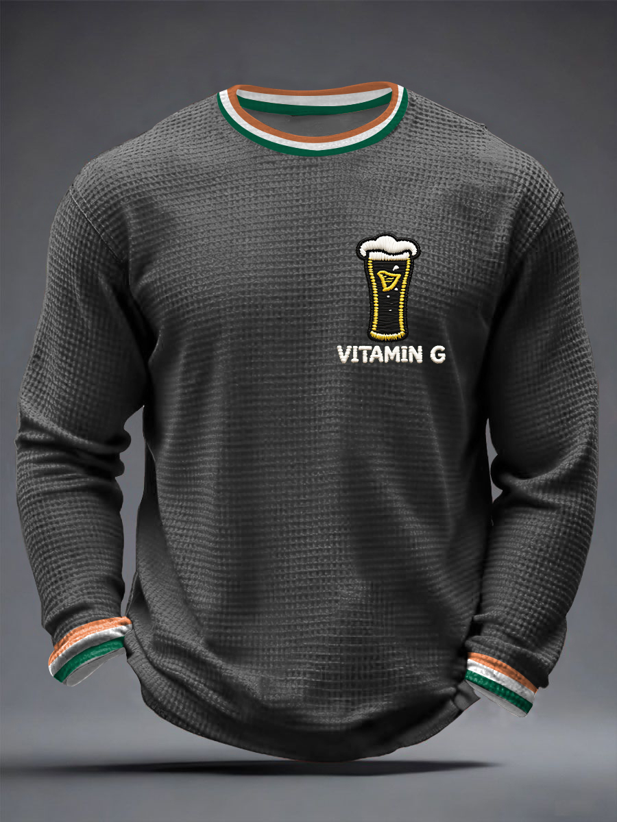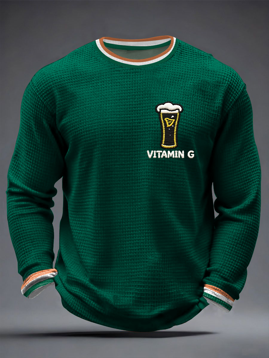 Men's St. Patrick's Day Vitamin G Shamrock Art Print Waffle Long Sleeve T-Shirt