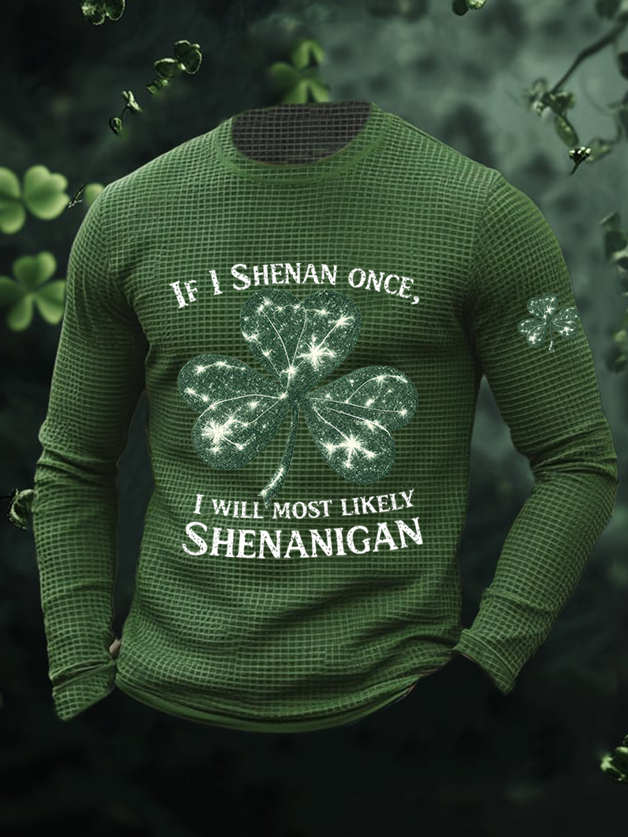 Men's If I Shenan Once I Will Most Likely Shenanigan Waffle Long Sleeve T-Shirt