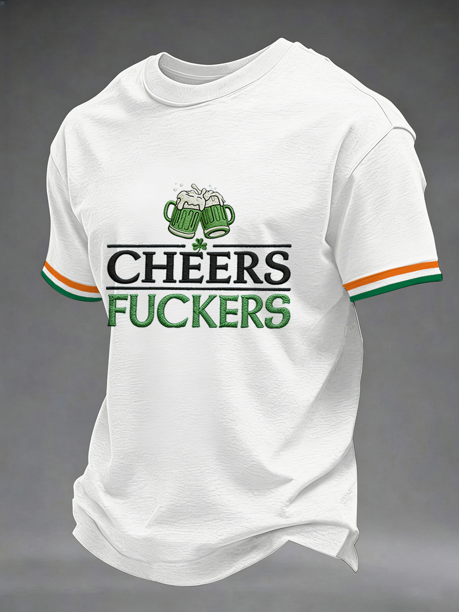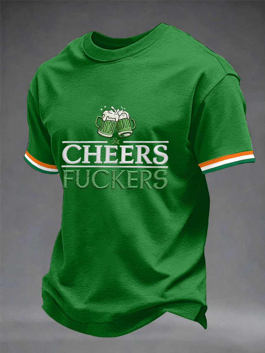 Men's Funny St. Patrick's Day Cheers F*ckers Green Beer Print Casual Tee