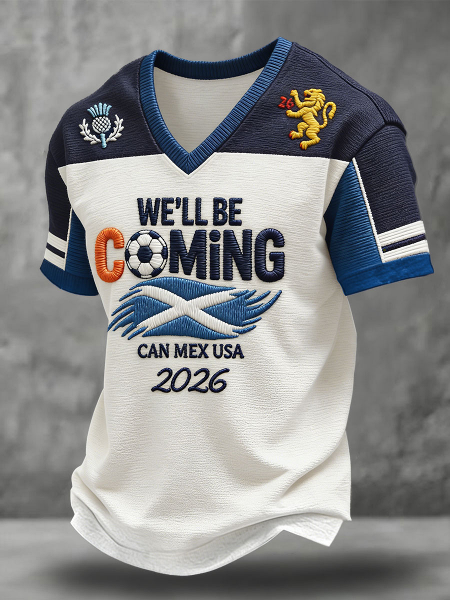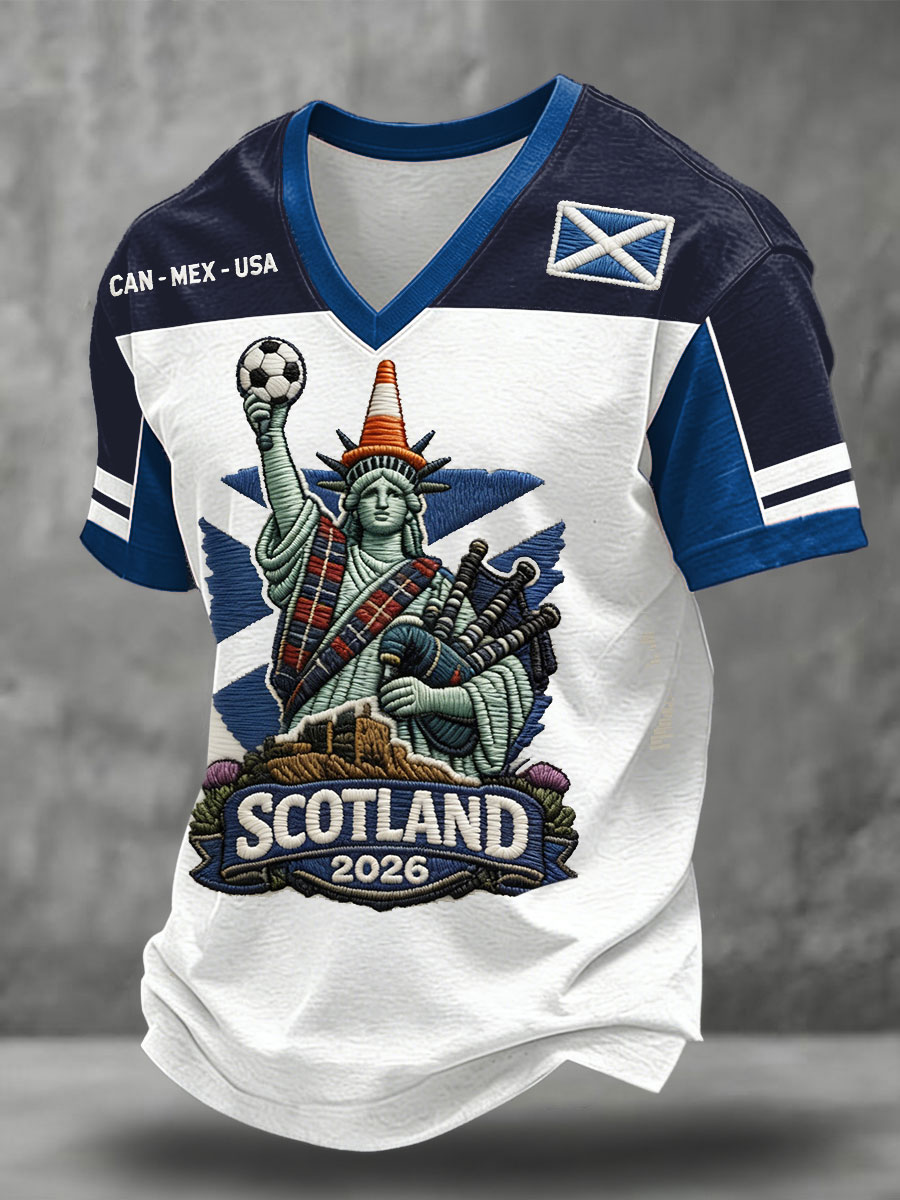 Men's Scotland Football Lover Tartan Army Printed V-neck T-shirt